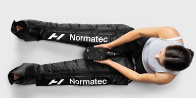 NormaTec compression therapy applies pressure on the legs and other areas of the body